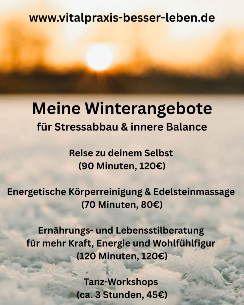 - Ernährungs- und Lebensstilberatung für mehr Kraft, Energie und Wohlfühlfigur: In dieser Beratung werden wir herausfinden, welche Ernährungs- und Lebensstilgewohnheiten dir Energie rauben und dich belasten. Du erhältst individuelle Ernährungstipps und Lebensstil-Empfehlungen, um deine Kraft, Energie und dein Wohlbefinden zu steigern.